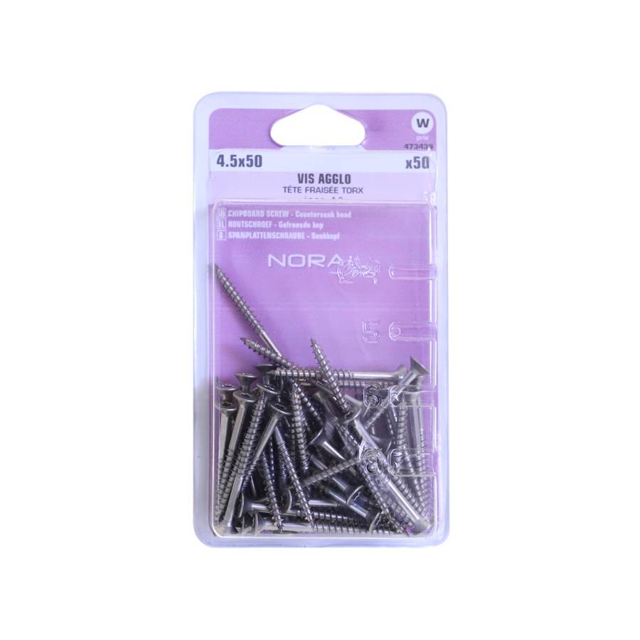 VIS AGGLO TETE FRAISEE EMPREINTE TORX MATIERE INOX A2 TAILLE 4,5X60 CONDITIONNEMENT BLISTER DE 50 PIECES