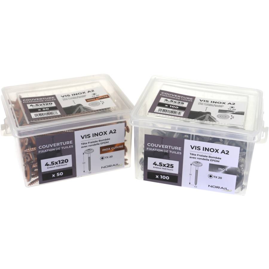 Tête fraisée bombée: permet une finition esthétique - En inox A2 résistant à la corrosion et avec rondelle EPDM ø20mm assurant une bonne étanchéité.