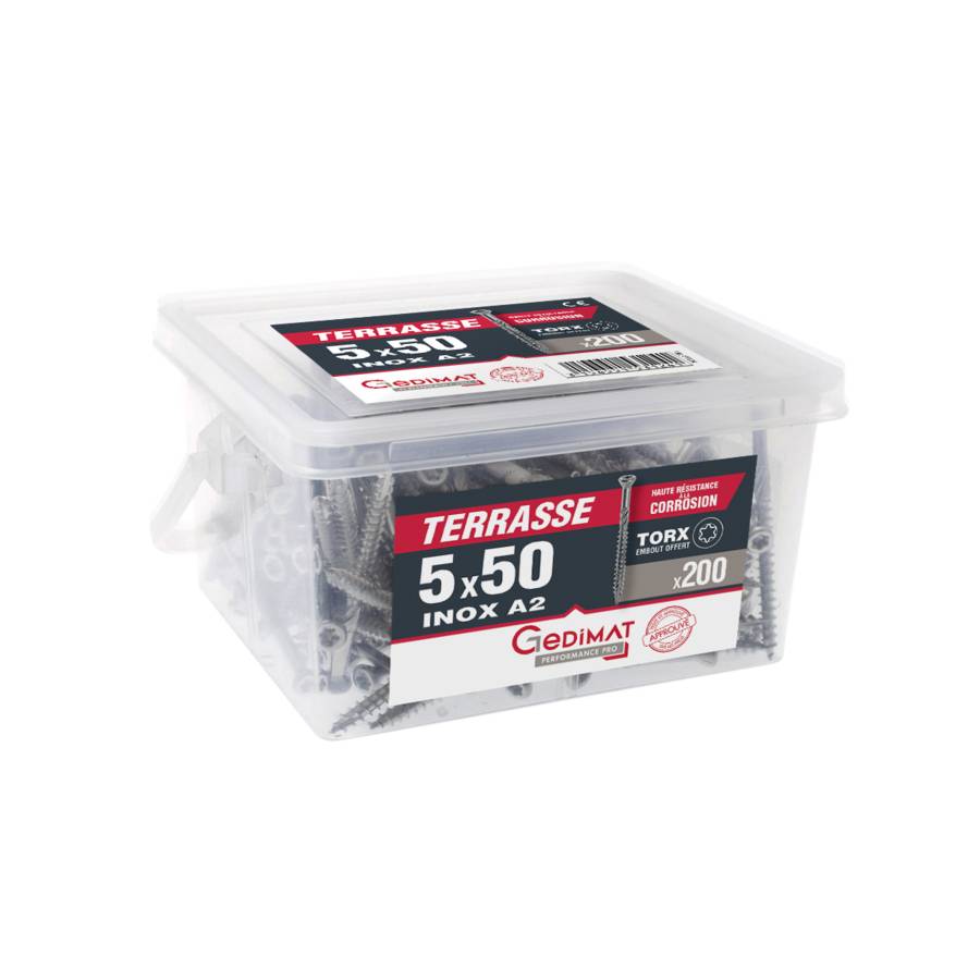 Vis terrasse TORX A2 tête réduite - 5 x 50 mm - Seau de 200 pièces - Gedimat