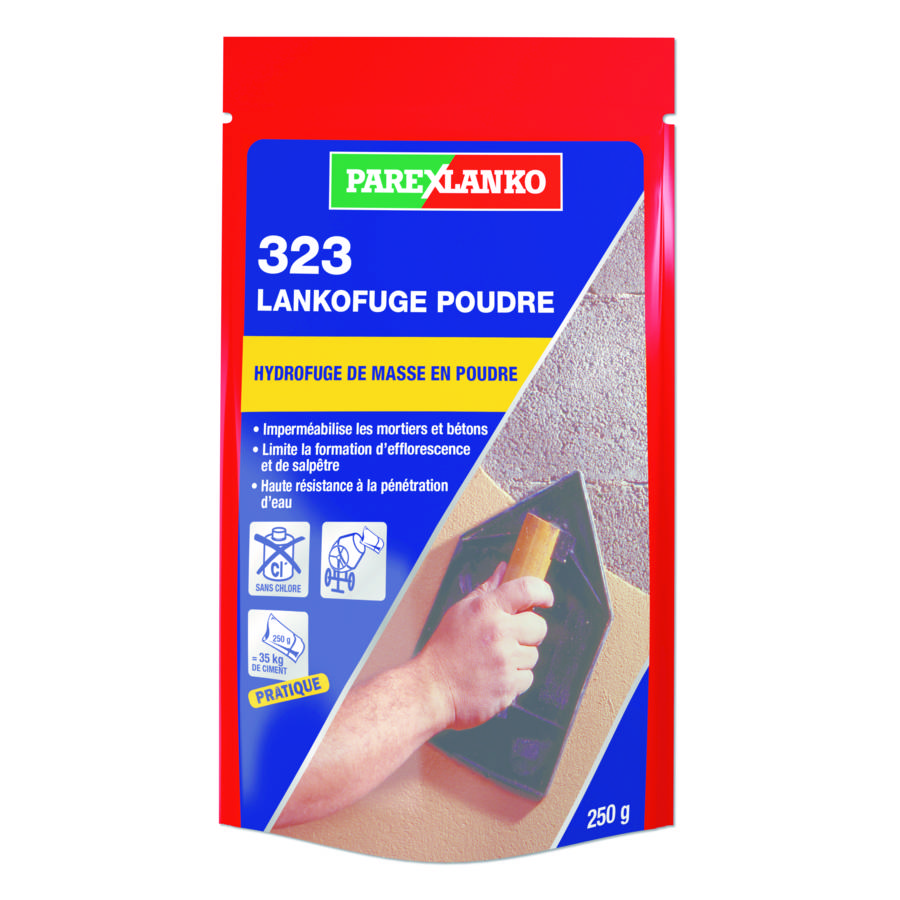 L'adjuvant 323 Lankofuge poudre est adapté à l'imperméabilisation des mortiers de façades et à l'étanchéité des bétons de fondation.
