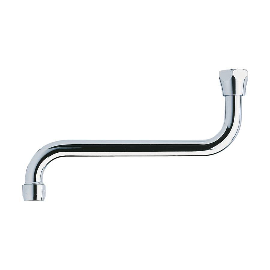 Bec de remplacement pour robinet mélangeur mural. Forme S, longueur 200 mm, diamètre du tube 14 mm. Filetage femelle 1/2' (15x21). Joint torique pour l'étanchéité. Equipé d'un aérateur mousseur femelle 22x100. Finition : chromé.