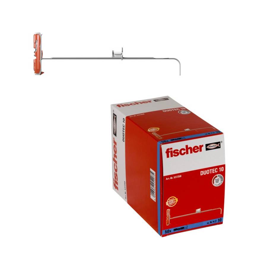 La cheville fischer DUOTEC est appropriée pour les montages en attente. Installation simple avec un foret standard de diamètre 10 ou 12 mm La petite taille de l'élément à bascule simplifie l'installation, même dans les cavités étroites et isolées. Tenir compte de la longueur de l'élément à bascule. Dans les matériaux pleins, comme le béton ou le bois, la fischer DUOTEC réagit comme une cheville à expansion. Attention, pas avec une vis à pas métrique. L'adaptateur de vis flexible permet l'usage de différentes vis, crochets et tiges filetées.