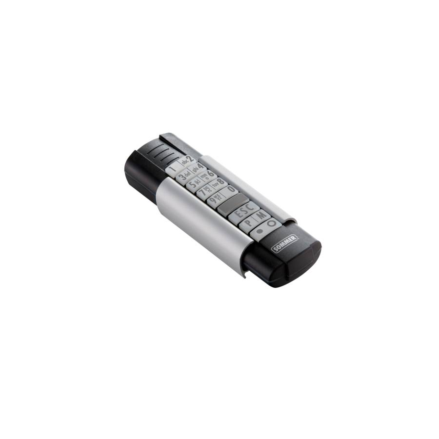 Emetteur portatif 12 canaux. - Portée à 50 m et plus suivant l'environnement. - Indice de protection IP 64. - Jusqu'à 10 codes d'accès et 2 touches non codées. - Dimension : 147 x 48 x 30 mm.