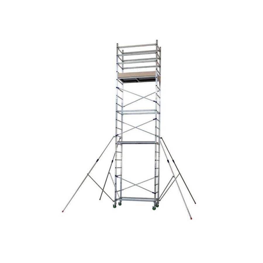 Structure en aluminium avec 4 roues de freinage composé de 4 éléments progressifs - 4 stabilisateurs télescopiques - Base pliante - 4,10m.