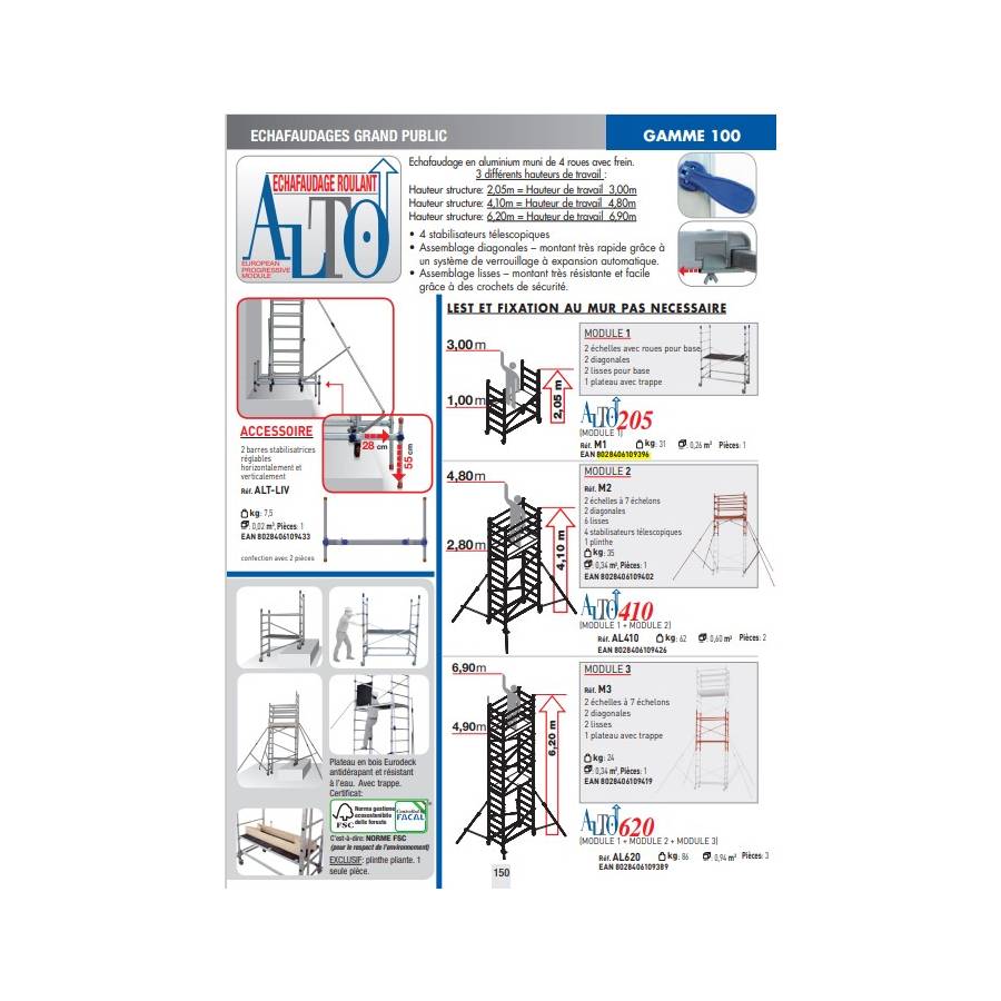 Echafaudage ALTO PRO h.travail - Gedimat