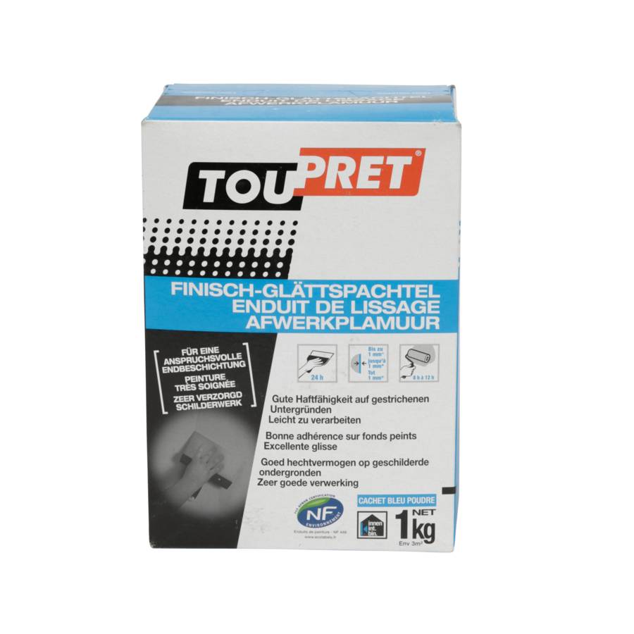 Enduit de finition gain de temps, Extra fin, sans surépaisseur et sans arrachement, Excellente glisse, ponçage facile, Consommation : 250 à 350g.m²., Temps d'utilisation : 24 heures.Adhérence enduit.support (EN 16-566) : supérieur à 0.5 Mpa.