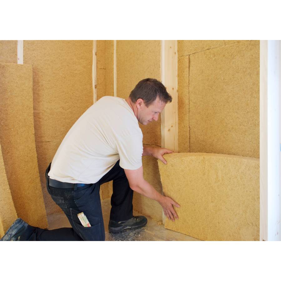 Panneau semi-rigide naturel, écologique, à chants droits composé de fibre de bois recyclable. Il offre de haute performance isolante, tant en hiver qu‘en été et procure un climat d‘habitation sain. Ouvert à la diffusion de vapeur d'eau. Régulateur hygrométrique. S‘adapte aisément aux formes des contours, facilité de mise en œuvre. Conductivité thermique = 0,038W/mK. Certifié ACERMI 11/134/733. Paquet de 10 panneaux soit 7,02m².