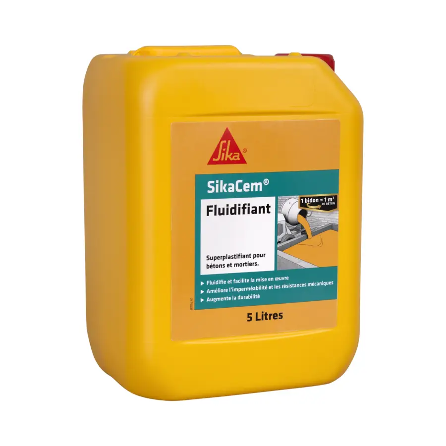 SikaCem Fluidifiant est un superplastifiant qui améliore la mise en place du béton tout en augmentant ses résistances mécaniques. Bidon de 5l.