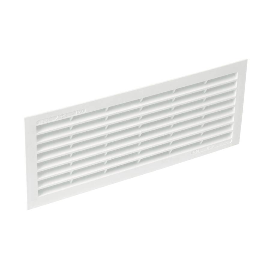 Grille d'aération rectangulaire intérieure et extérieure blanche, à visser ou à coller, dimensions extérieures h. 120 x l. 299 mm, avec moustiquaire, section passage d'air 150 cm² - Gedimat