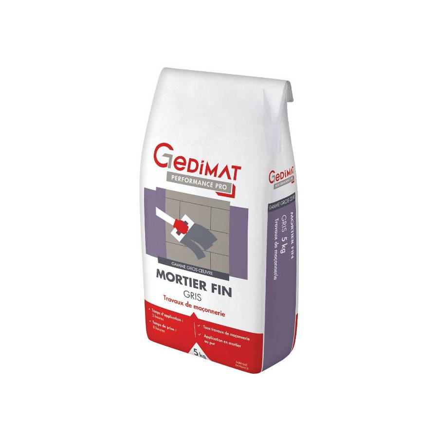 Mortier fin maçonnerie - sac de 5kg - gris - Gedimat