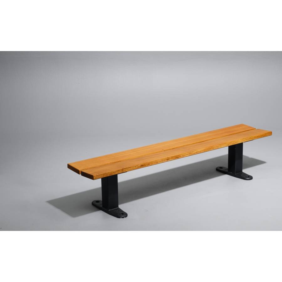 Une ligne de bancs élégante alliant la robustesse exceptionnelle des piétements métalliques avec la chaleur des épaisses lames de bois.