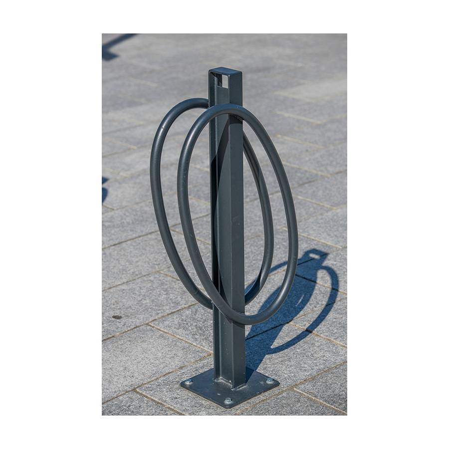 Les 2 arceaux elliptiques espacés facilitent Les 2 arceaux elliptiques espacés facilitent l’appui et la fi xation de 2 vélos côte à côte.