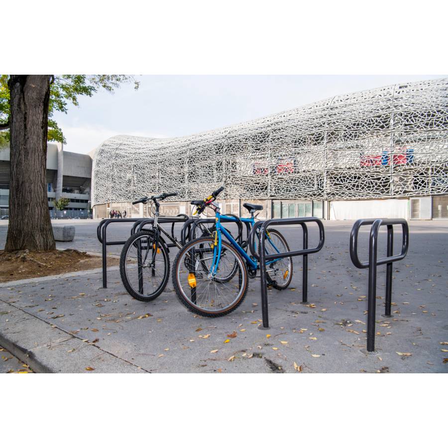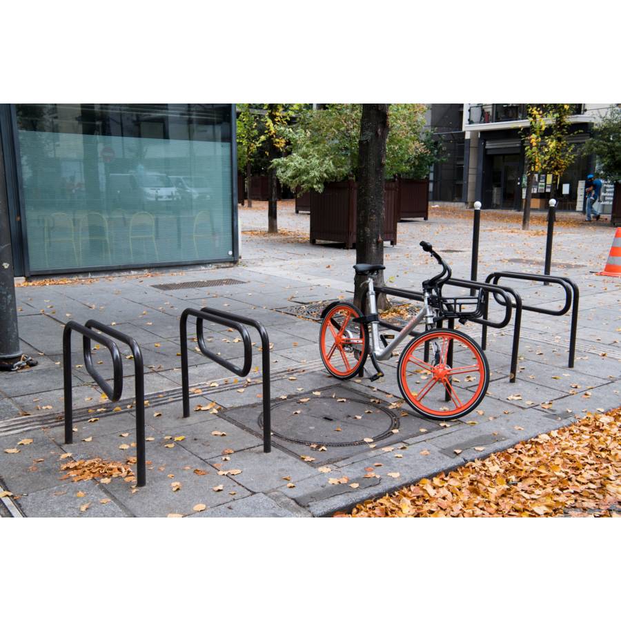 Le support vélos «Trombone Paris » permet l’accrochage de vélos de toutes tailles. Son design spécifique facilite l’appui de deux vélos côte à côte, en les écartant un peu.