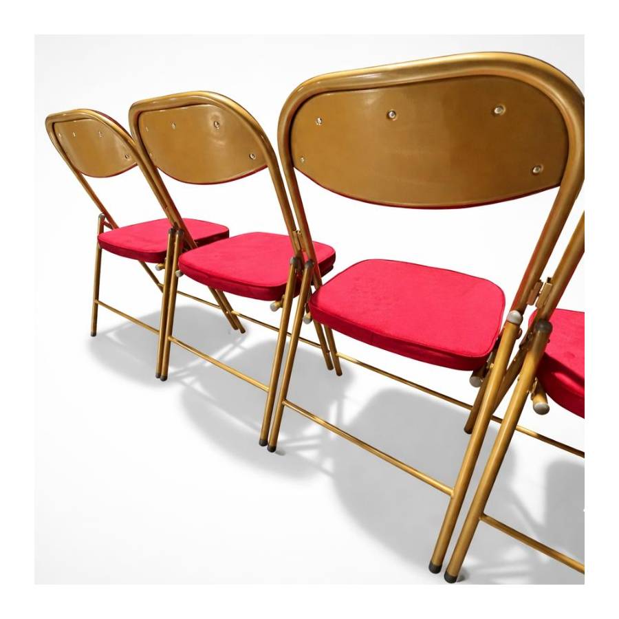 - Coloris : structure dorée, assise et dossier rouge framboise (RAL 3027)