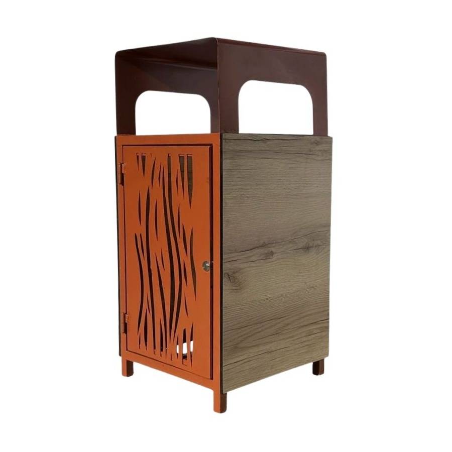 La corbeille dispose d’une porte frontale verrouillable à clé, garantissant la sécurité du contenu et un accès facile pour le personnel d’entretien.