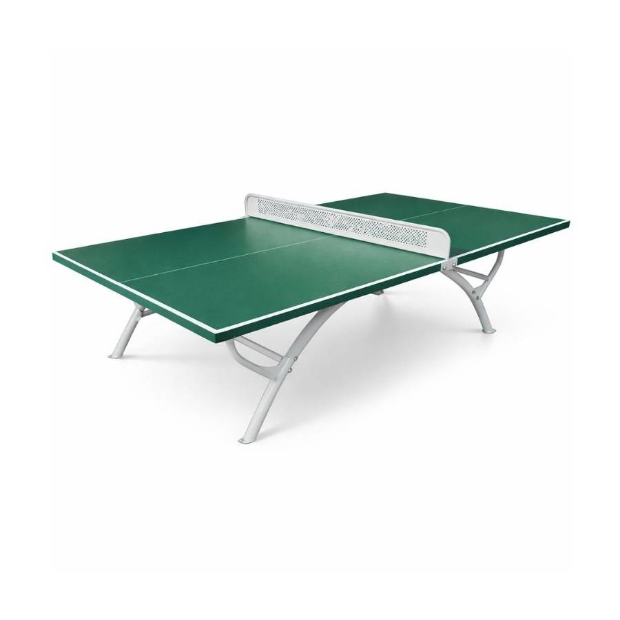 Table de ping-pong en résine polyester et fibre de verre, conçue pour un usage extérieur intensif dans les espaces publics, écoles ou campings.