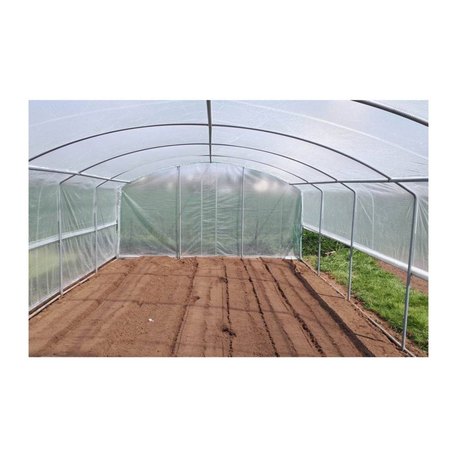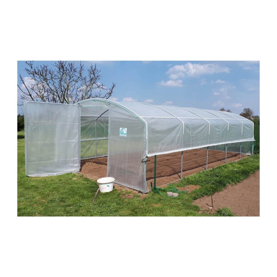 Choisissez l'autosuffisance alimentaire avec la serre 4 Saisons Plus de 7,50m. Origine France Garantie, les jardins familiaux apprécieront sa robustesse.