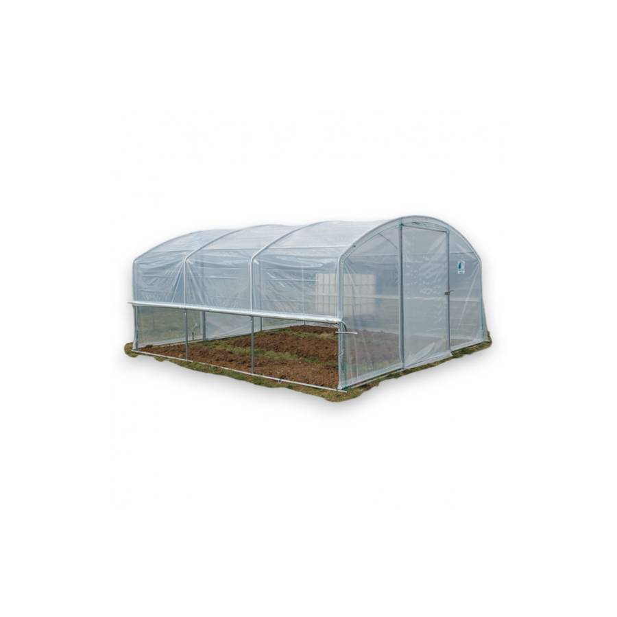 Achetez la serre tunnel Tonneau 4 Saisons Plus, de 4,50m. Sa surface de jardinage de 18m² et ses options conçues pour la permaculture vont vous séduire.