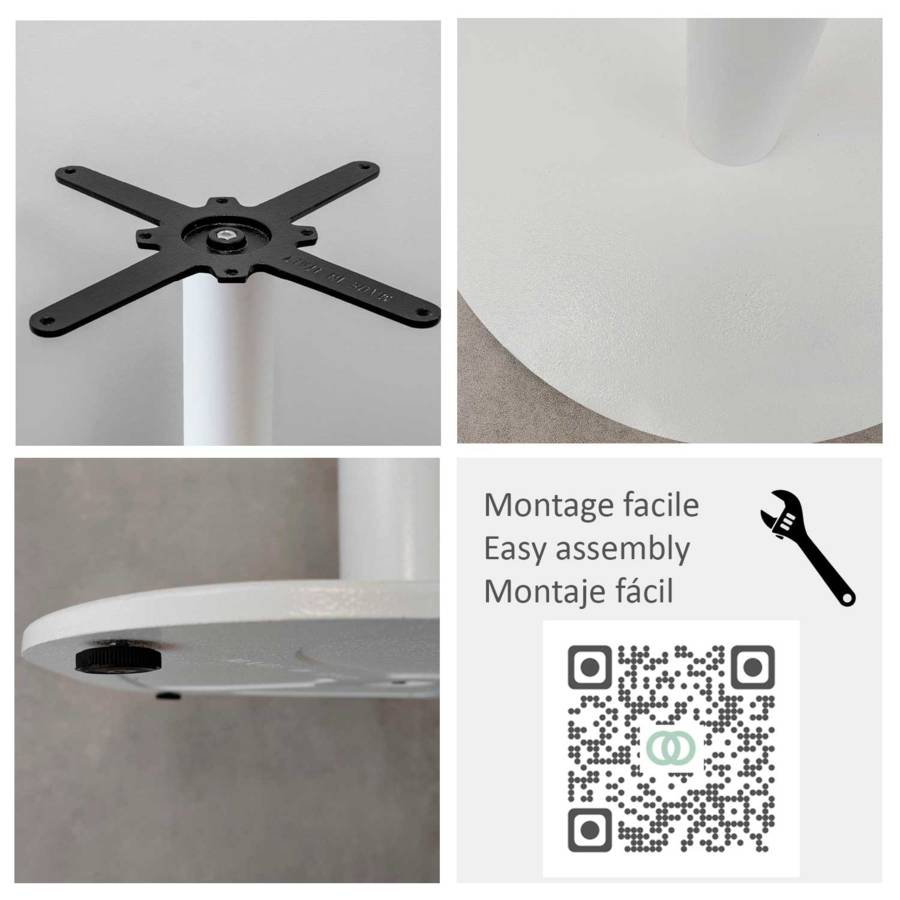 Une table RestooTab est livrée avec la visserie et les instructions de montage. Le plateau est pré-percé avec des inserts afin de garantir une excellente fixation avec le pied. Le montage est simple est peut être rapidement réalisé par une personne seule. Voir la notice de montage sur cette fiche produit.