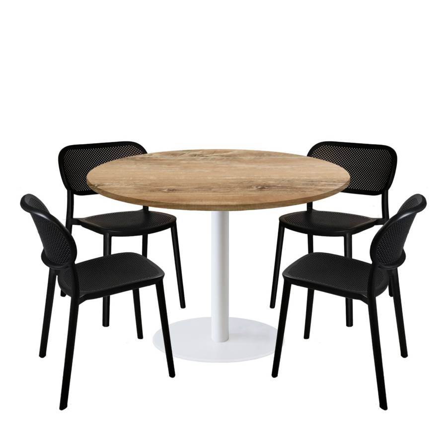 Lot table Ø120cm & 4 chaises - pied blanc plateau chêne slovène - intérieur - RestooTab