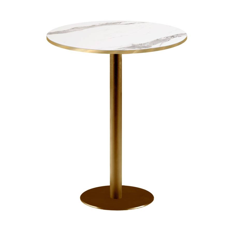 Mange-debout pied Doré Ø60cm marbre blanc chants laiton - intérieur - RestooTab