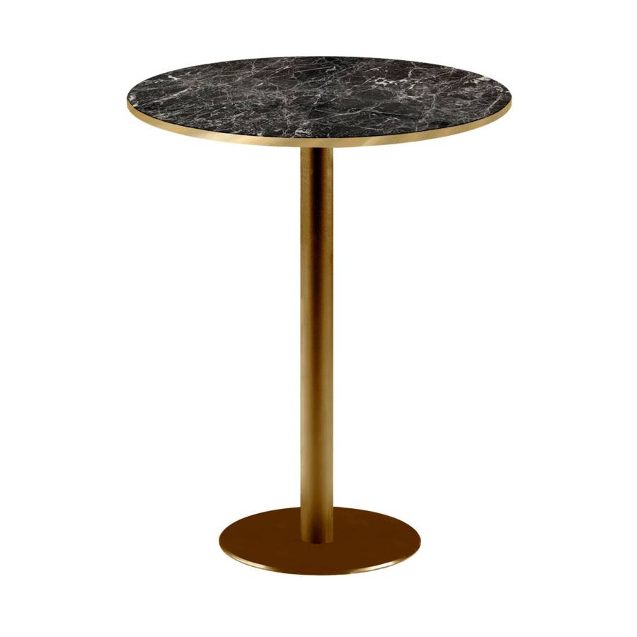 Mange-debout pied Doré Ø60cm marbre noir brillant chants laiton - intérieur - RestooTab