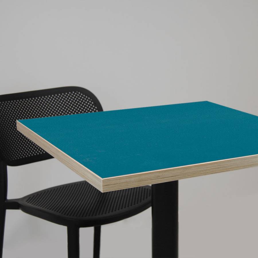 Mange-debout pied noir 60x60cm bleu prusse chants bois | mobilier collectivités