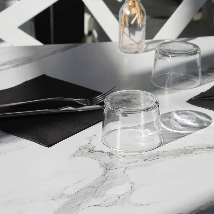 Mange-debout pied noir Ø60cm marbre blanc - intérieur - RestooTab