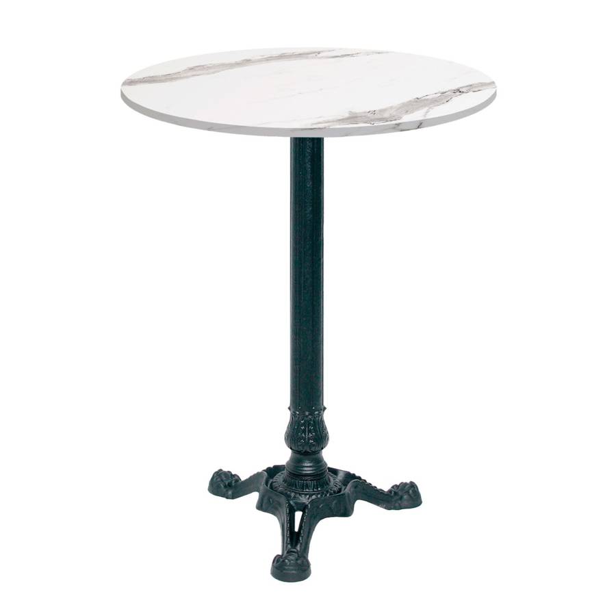 Mange-debout pied noir Ø60cm marbre blanc | mobilier collectivités