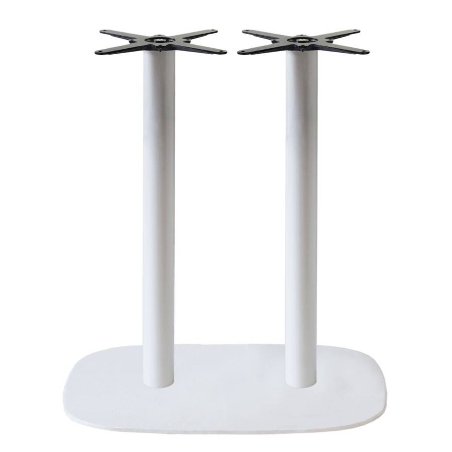Pied double pour table haute rectangulaire blanc, conçu pour un usage intérieur professionnel. Robuste et facile d'entretien, idéal pour les collectivités. Pour des plateaux max 120x70cm.