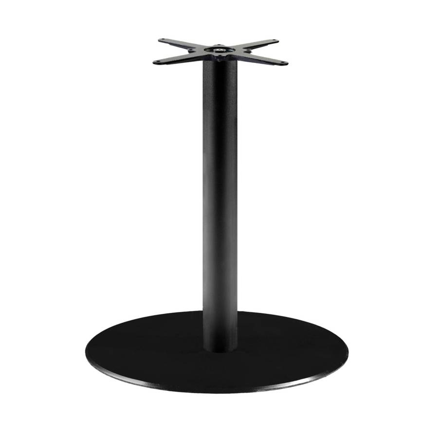 Pied de table noir, hauteur standard, conçu pour un usage intérieur professionnel. Robuste et facile d'entretien, idéal pour les collectivités. Pour des plateaux max 110x110cm ou Ø130cm.