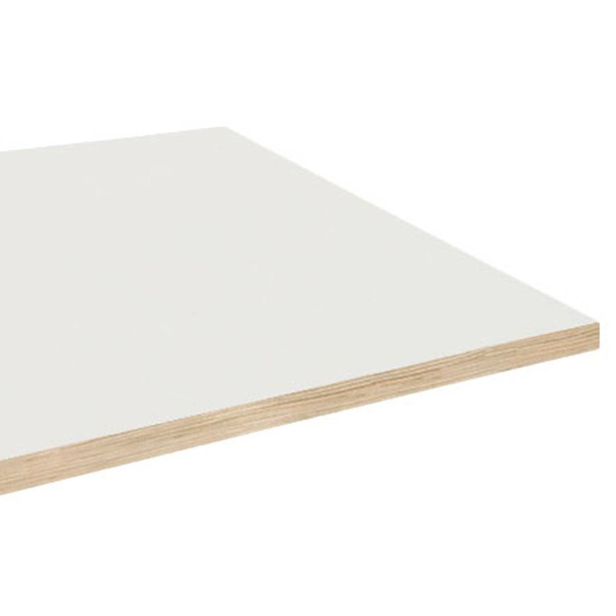 - Matériau : Plateau en bois aggloméré avec placage stratifié très résistant. Face inférieure du plateau en mélaminé blanc.