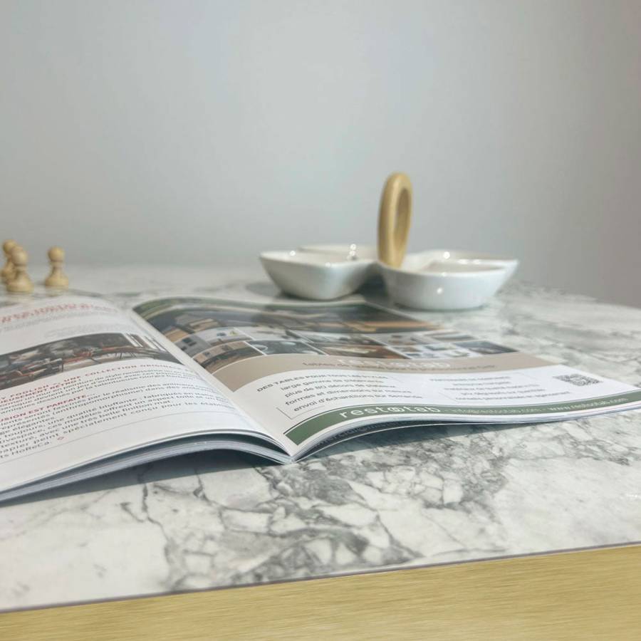 Plateau de table 160x80cm Marbre Bianca Luna & laiton | mobilier collectivités