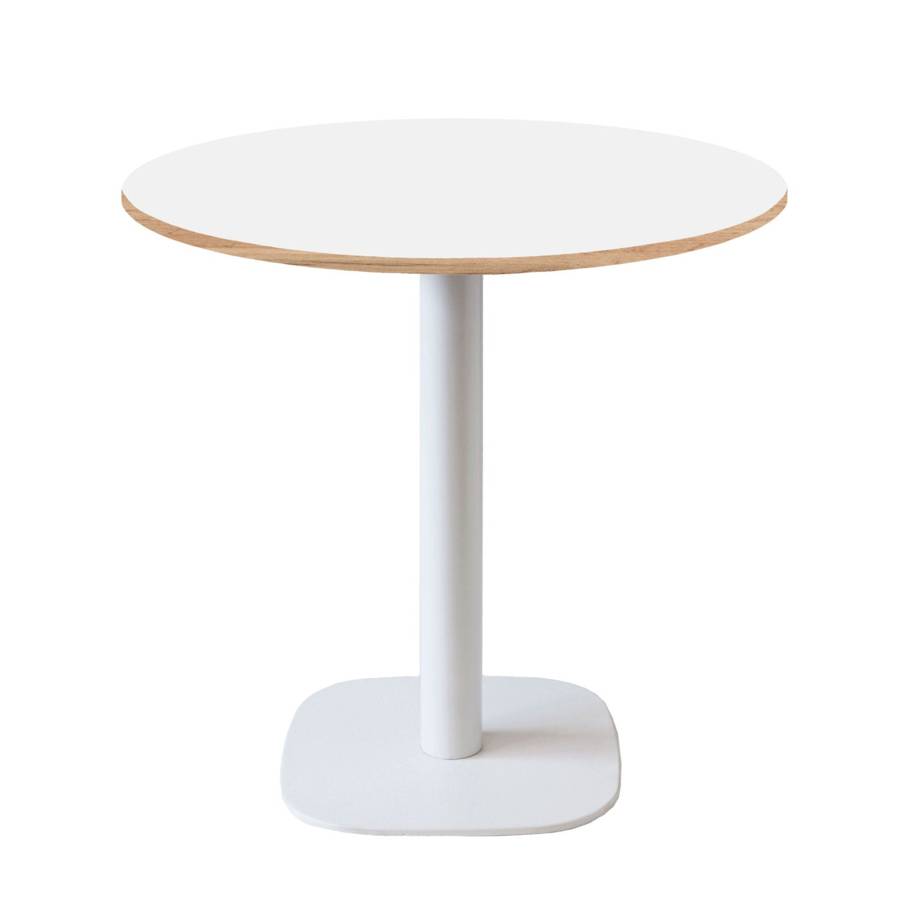 Table pied blanc Ø70cm blanc chant bois - intérieur - RestooTab