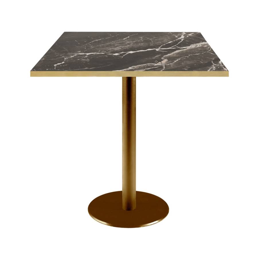 Table pied Doré 70x70cm marbre royal chants laiton | mobilier collectivités