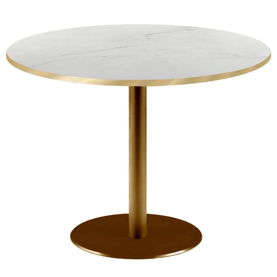 Table pied Doré Ø120cm marbre paros chants laiton | mobilier collectivités
