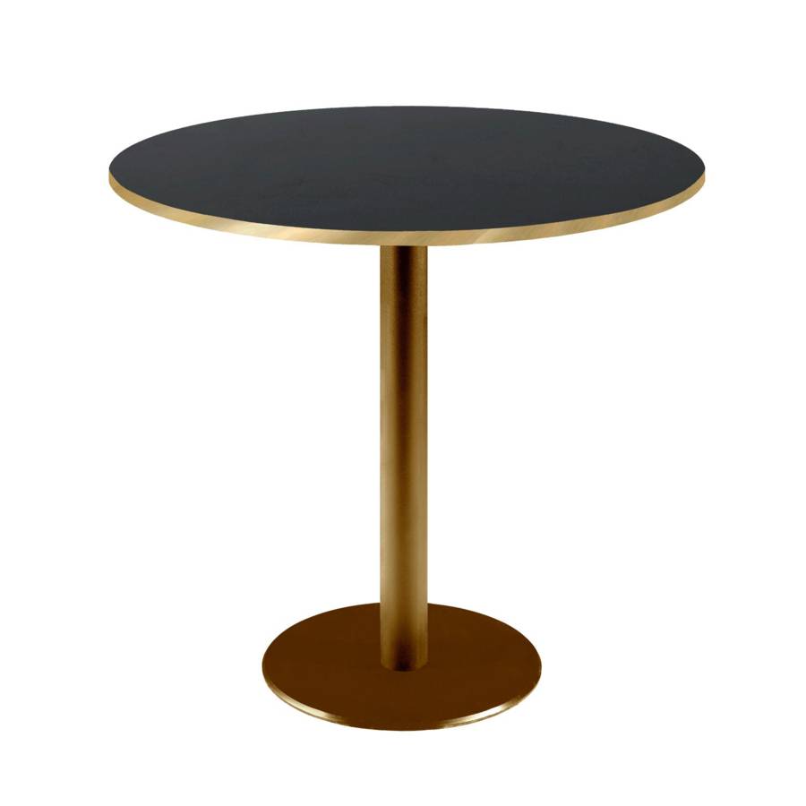 Table pied Doré Ø70cm noir chants laiton | mobilier collectivités