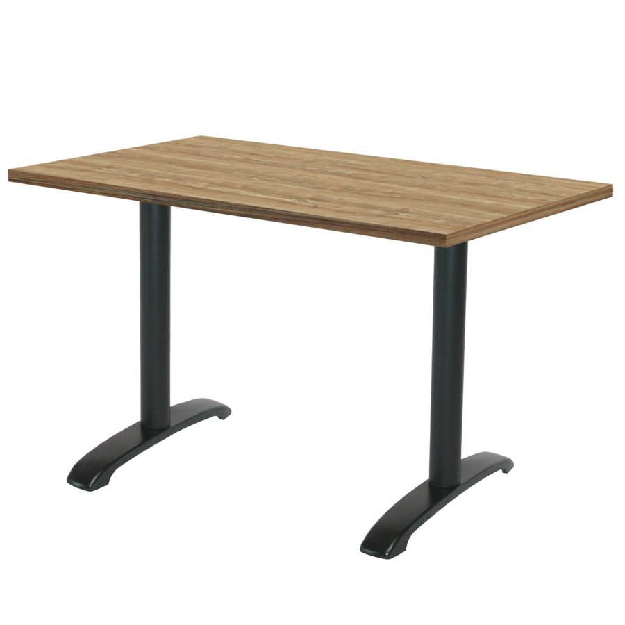 - Matériau : plateau en bois aggloméré avec placage stratifié très résistant - piétement en fonte de fer sablée et ébarbée, peinture époxy en poudre, traitée à haute température