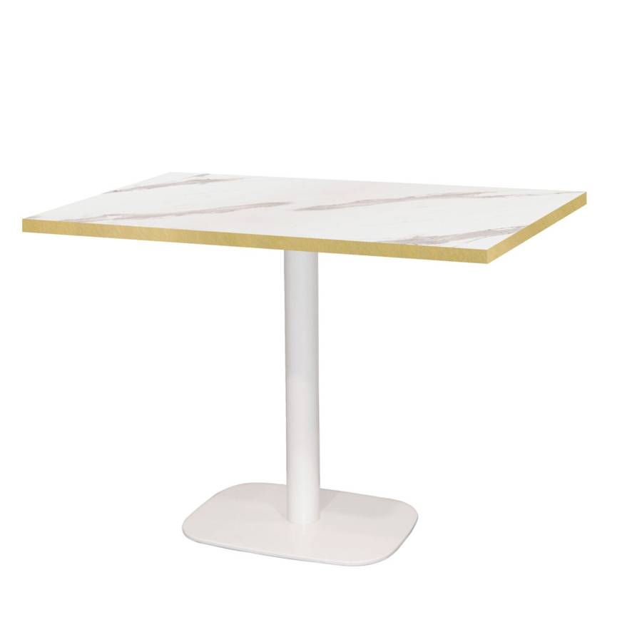 Table pied noir 120x70cm marbre blanc chant laiton | mobilier collectivités