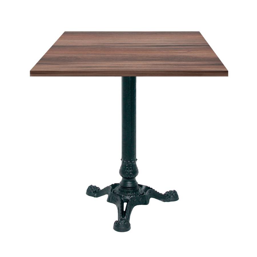 - Matériau : plateau en bois aggloméré avec placage stratifié très résistant - piétement en fonte de fer sablée et ébarbée, peinture époxy en poudre, traitée à haute température