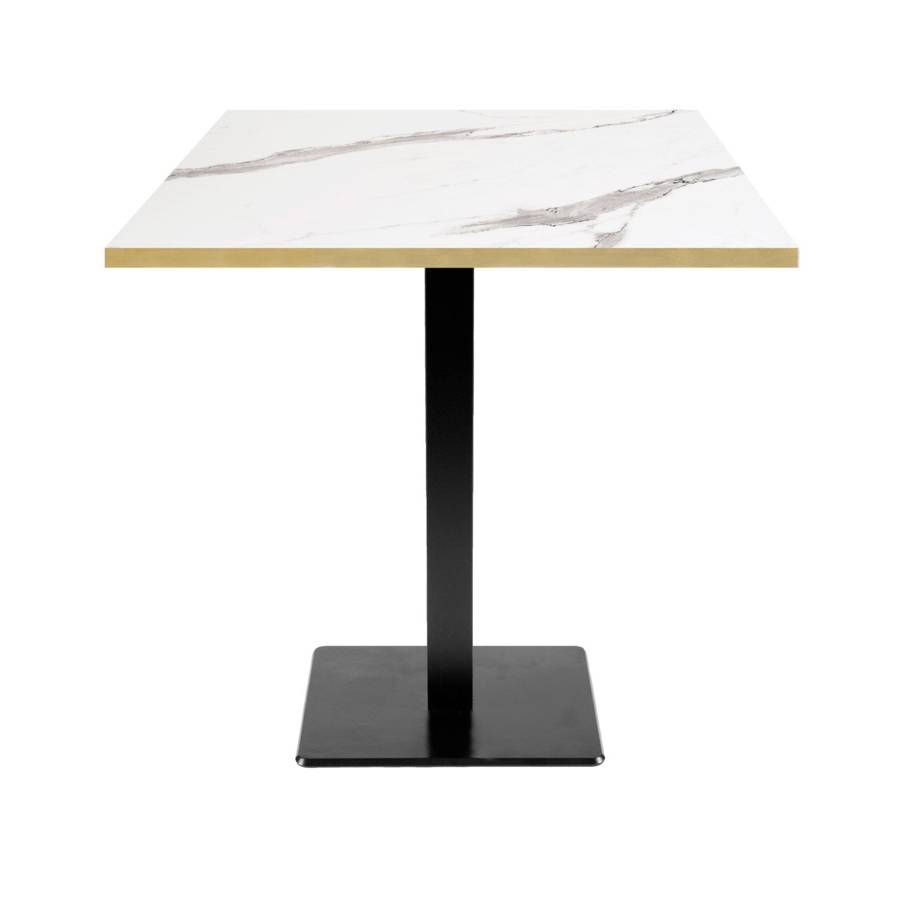 Table pied noir 70x70cm marbre blanc chant laiton | mobilier collectivités
