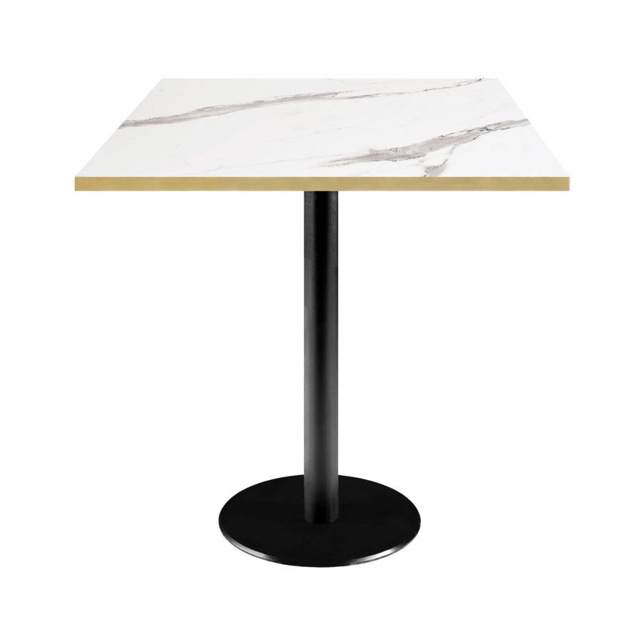 Table pied noir 70x70cm marbre blanc chant laiton | mobilier collectivités