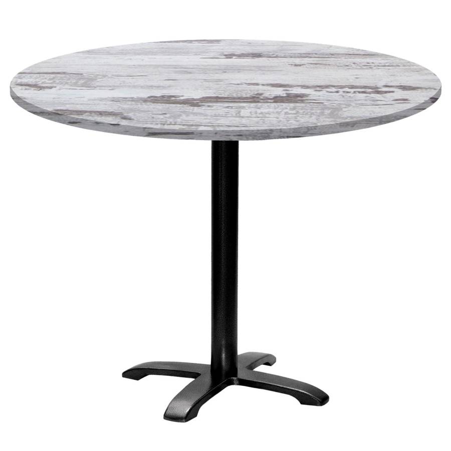 - Matériau : plateau en bois aggloméré avec placage stratifié très résistant - piétement en fonte de fer sablée et ébarbée, peinture époxy en poudre, traitée à haute température