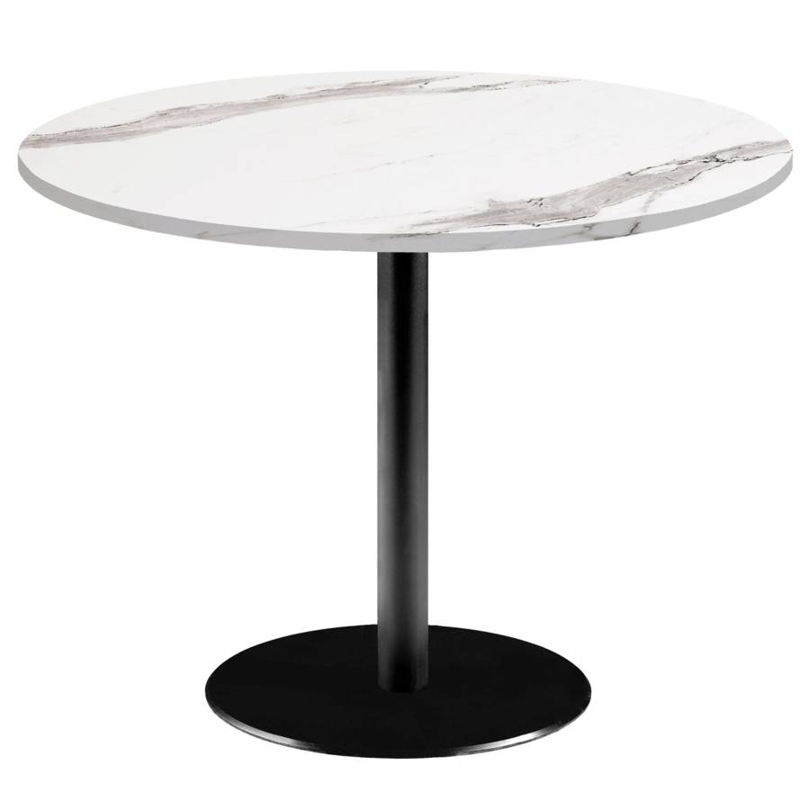 Table pied noir Ø120cm marbre blanc | mobilier collectivités