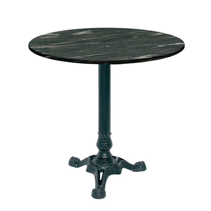 - Matériau : plateau en bois aggloméré avec placage stratifié très résistant - piétement en fonte de fer sablée et ébarbée, peinture époxy en poudre, traitée à haute température