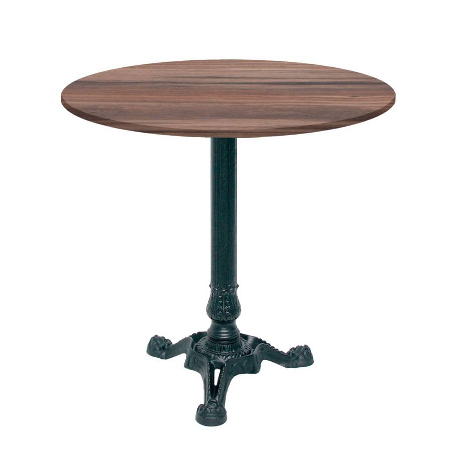 - Matériau : plateau en bois aggloméré avec placage stratifié très résistant - piétement en fonte de fer sablée et ébarbée, peinture époxy en poudre, traitée à haute température