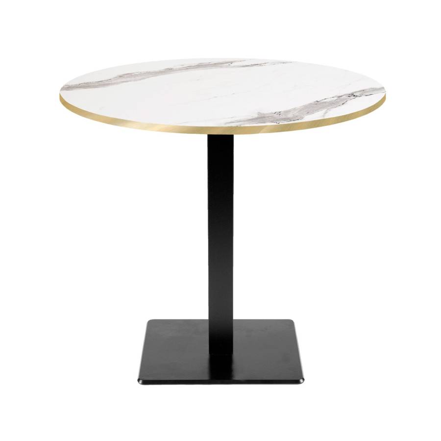 Table pied noir Ø70cm marbre blanc chant laiton - intérieur - RestooTab
