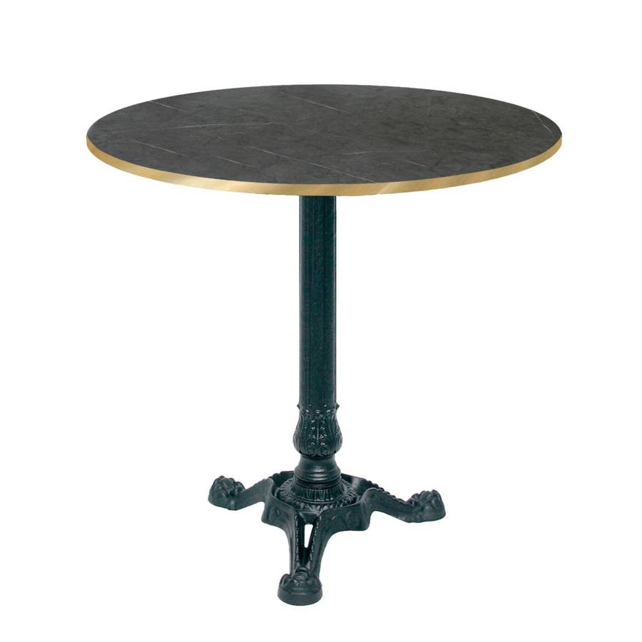 Table pied noir Ø70cm marquina chants laiton | mobilier collectivités