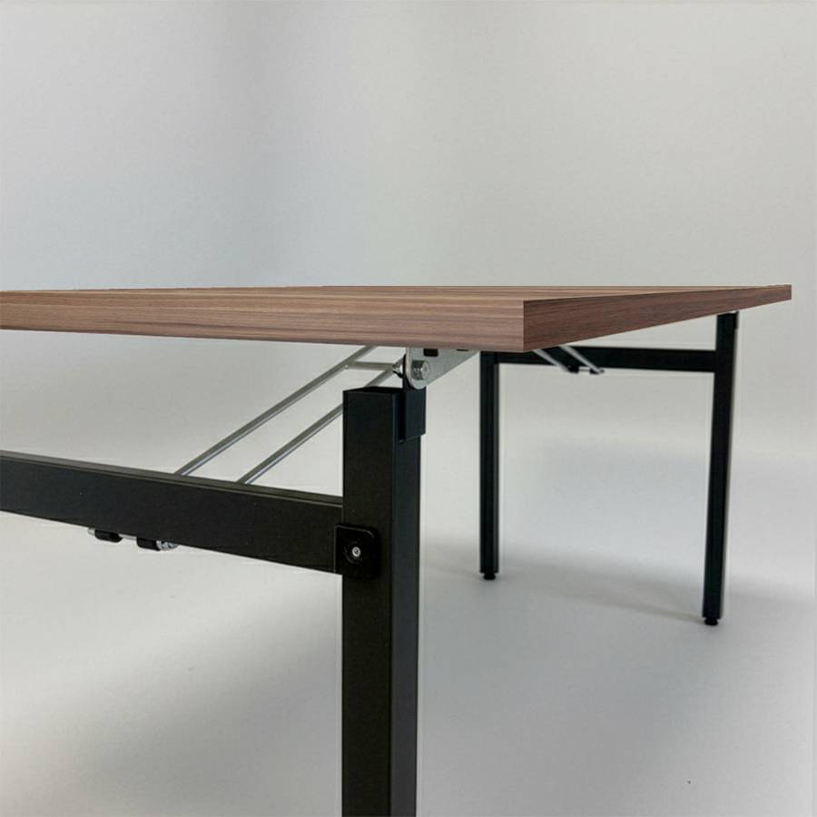 Une table pliable rectangulaire conviviale pour 8 à 10 personnes, pour usage en intérieur. Matériaux durables et faciles d'entretien. Idéale pour les collectivités.