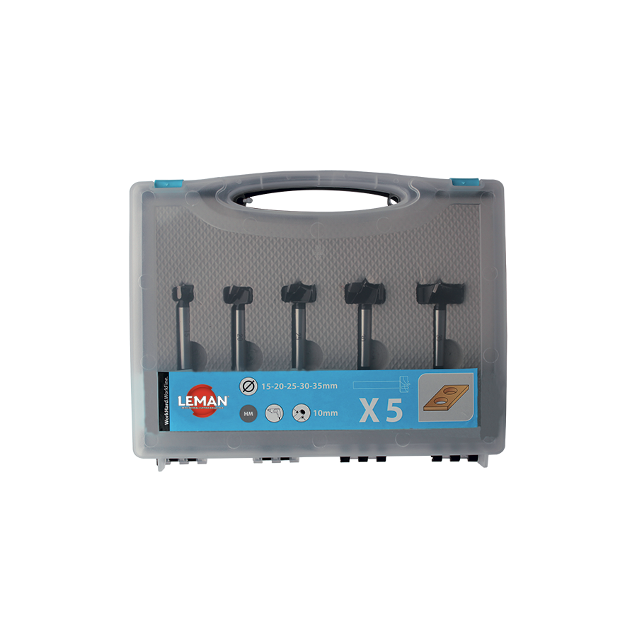 Coffret de 5 mèches à façonner à fond plat LEMAN HM D. 15,20,25,30,35 mm Q. 10 mm - 100.700.05 - Maxoutil